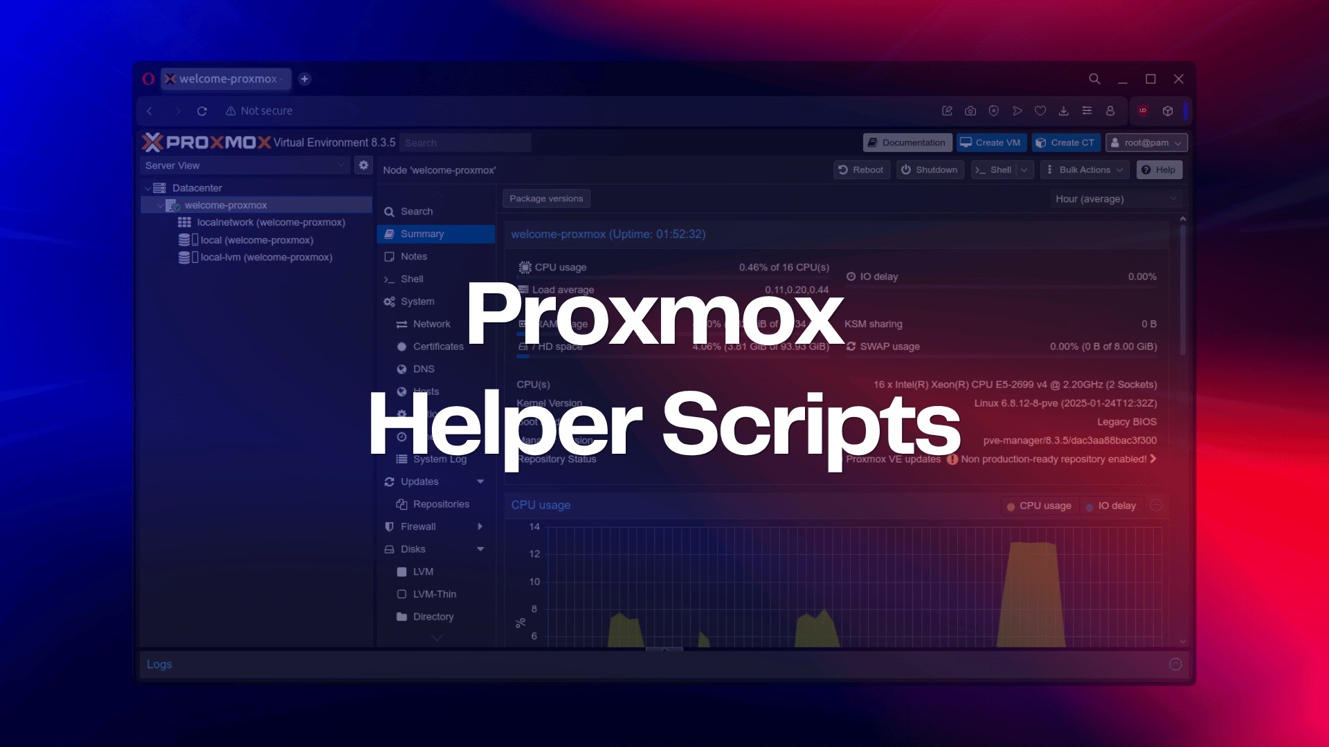 400'den fazla script ile homelab'ınızı ve kurumsal Proxmox altyapınızı yönetmenize yardımcı olan bu topluluk odaklı proje, Proxmox VE kurulumunu önemli ölçüde basitleştirmektedir.