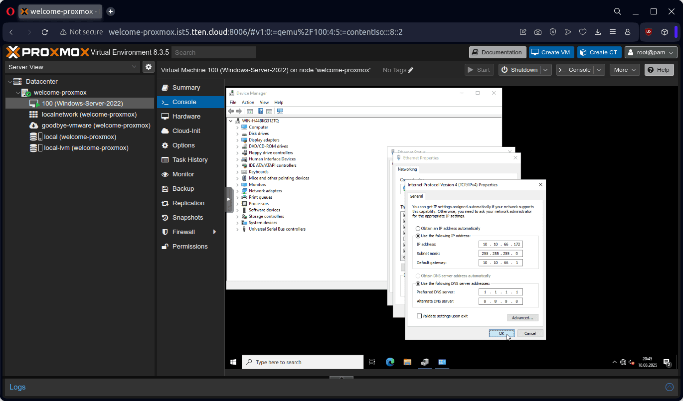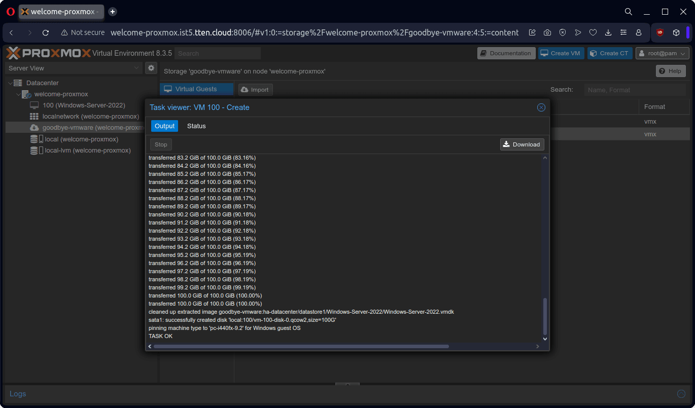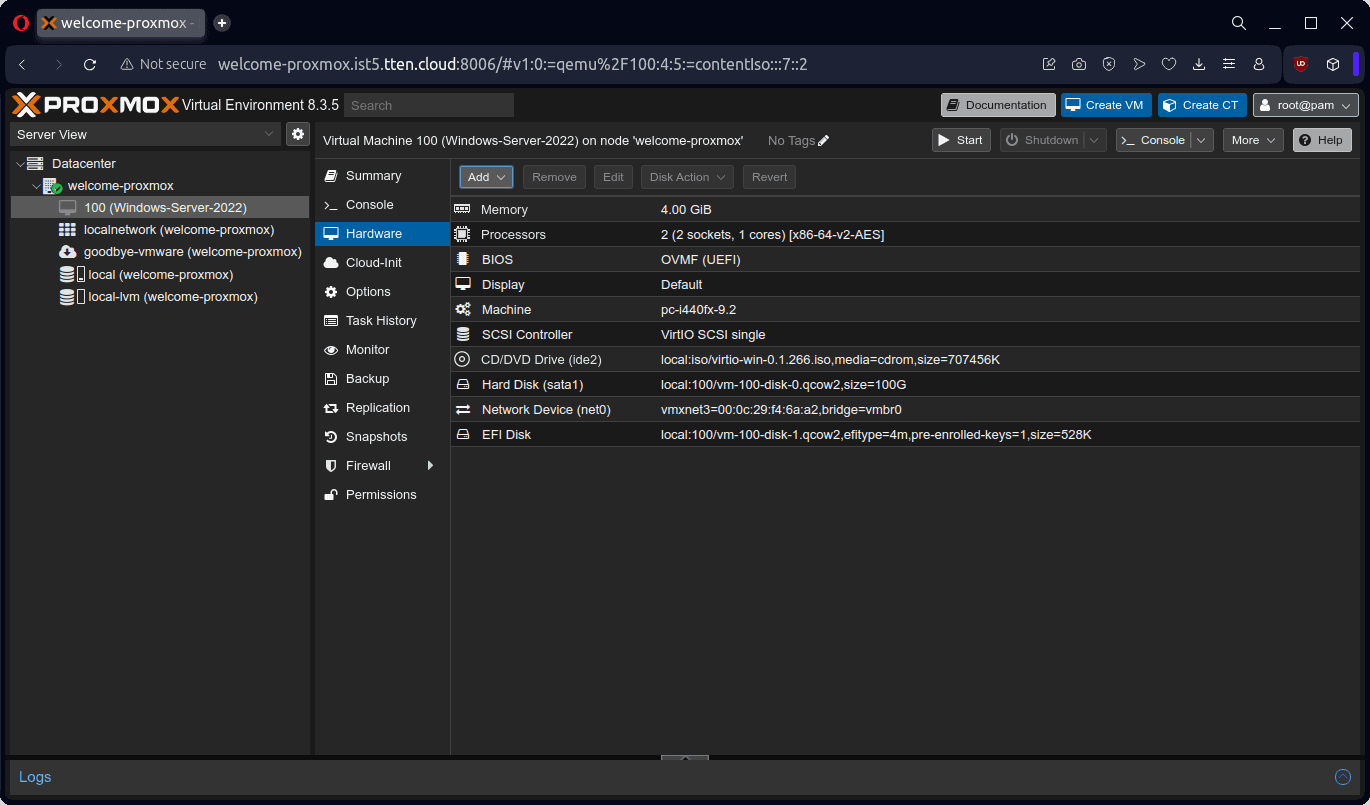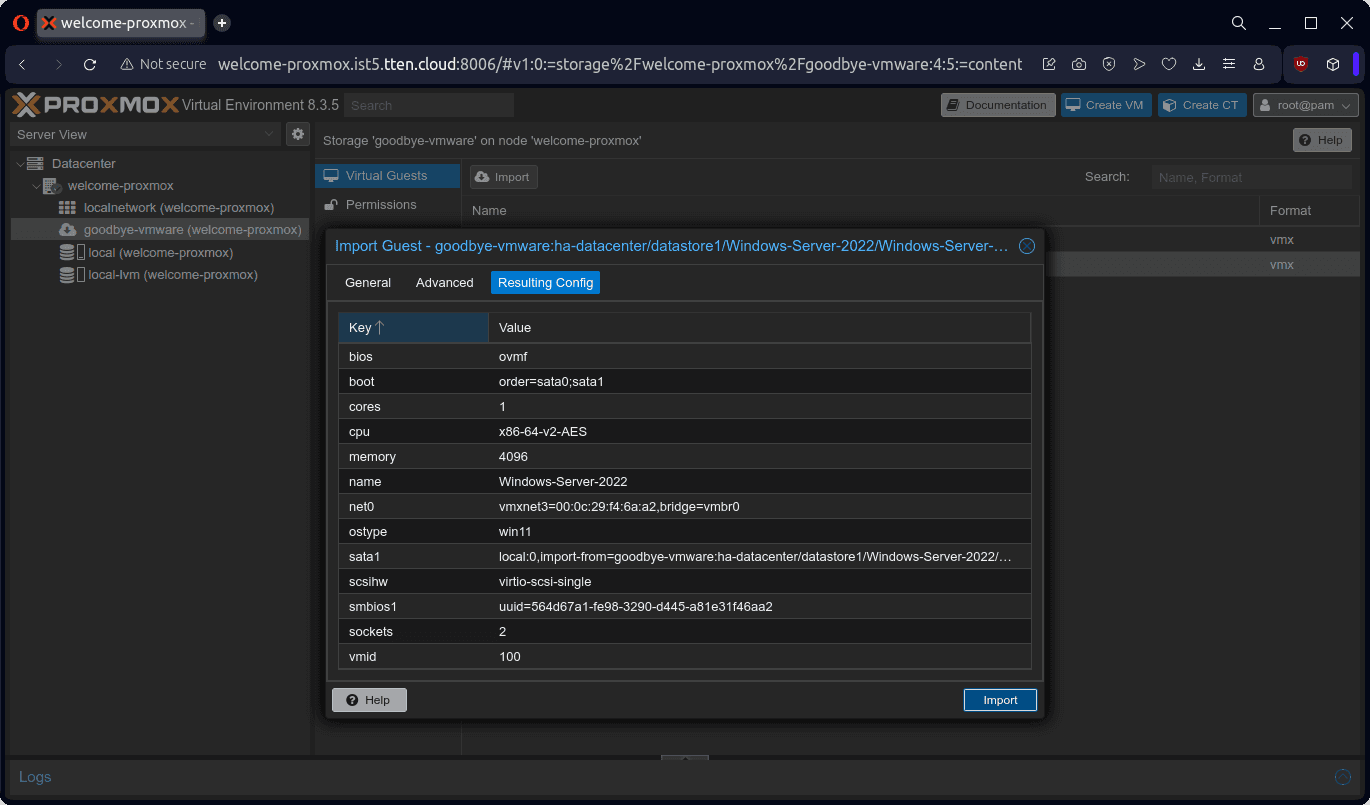 Bu dokümanda örnek olarak bir adet Windows Server 2022 ve bir adet Ubuntu 22 işletim sistemli sanal sunucunun, VMware ESXi 8.0.3 ürünü üzerinden Proxmox VE 8.3.5 ürününe aktarımını gerçekleştireceğiz.